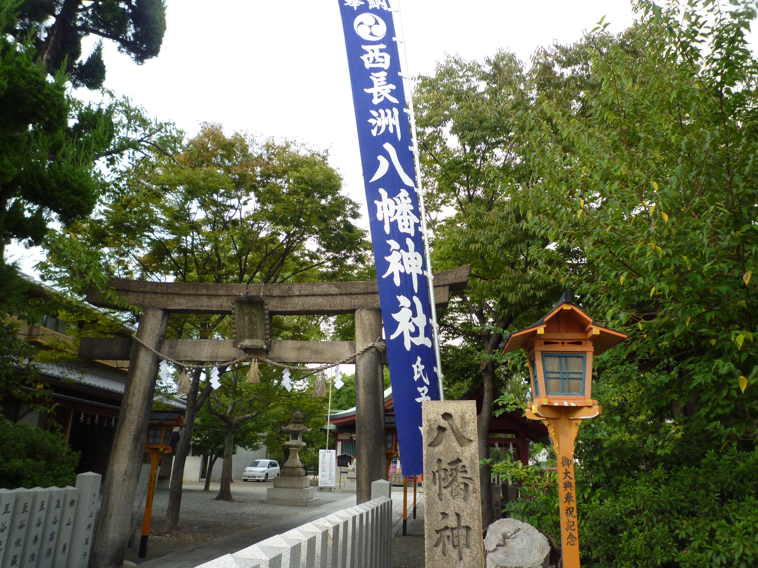 暫く行くと、右の路地に神社らしきが見える。「長洲八幡神社」である。