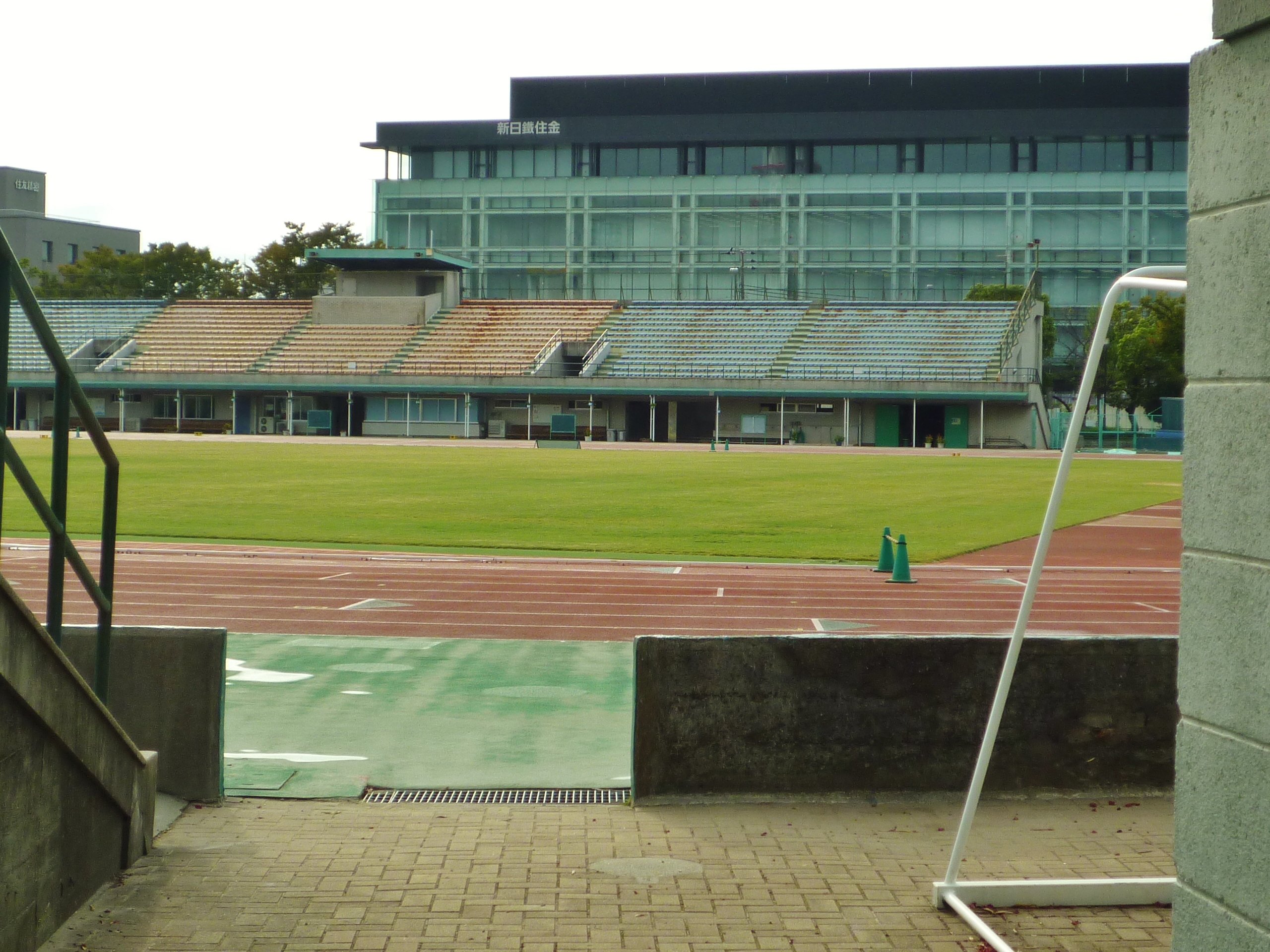 公園の木立を抜けると、その先には陸上競技場や体育館がある。