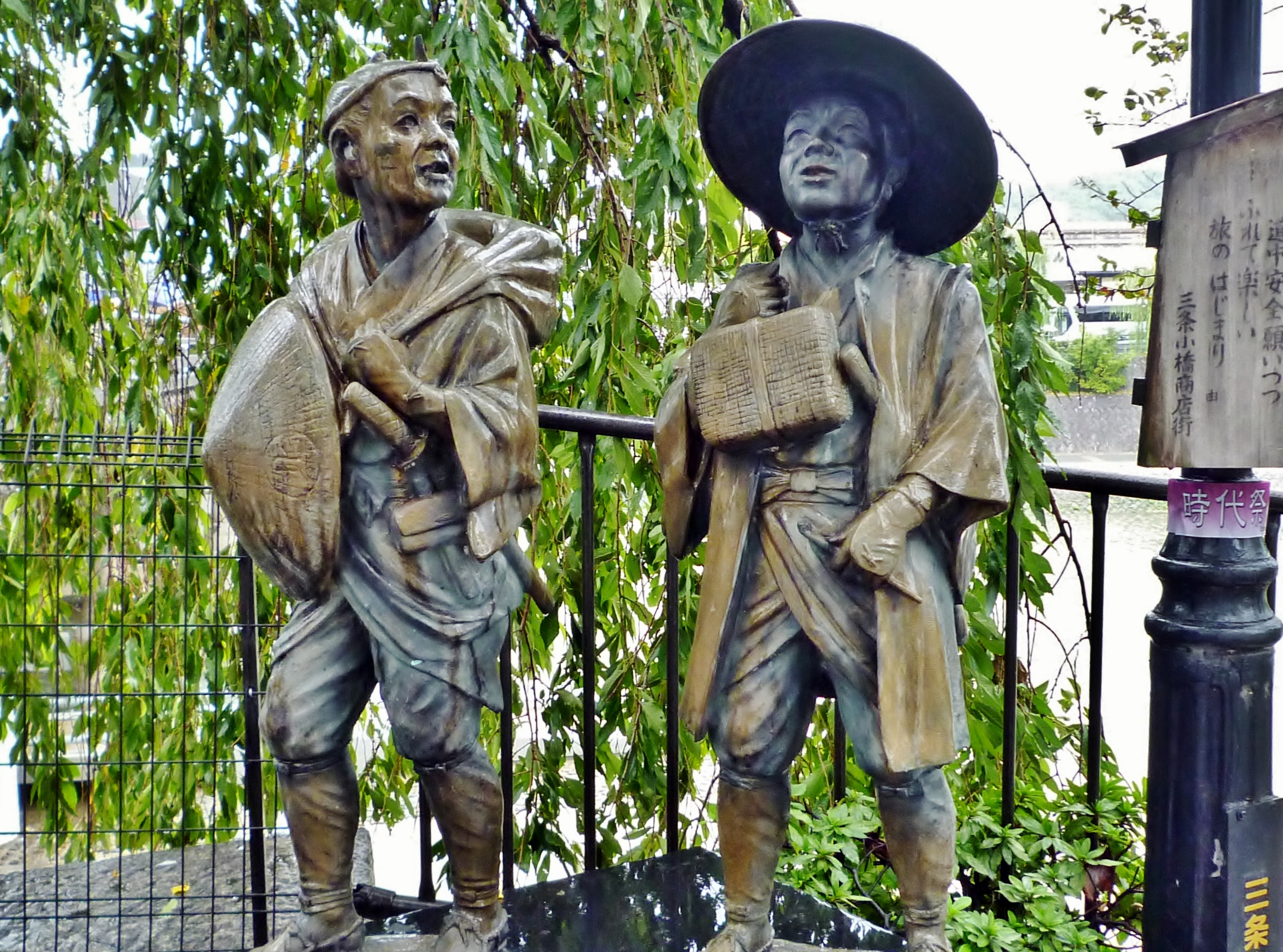 同じ袂の下流側には、十返舎一九の滑稽本「東海道中膝栗毛」で知られる弥次喜多の像が建てられている。